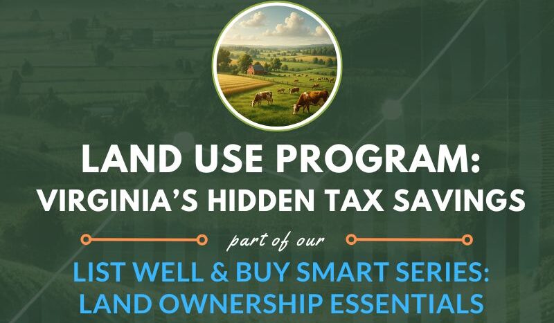 Disclaimer: The information provided in this article is for general informational purposes only and should not be considered tax, financial, legal, or professional advice. Market conditions and local regulations are subject to change. Property owners should consult with licensed professionals or their local Commissioner of the Revenue for specific guidance. The Virginia Land Team provides real estate advice based on experience in the rural Virginia market but encourages all clients to do their own research and seek professional assistance as needed.